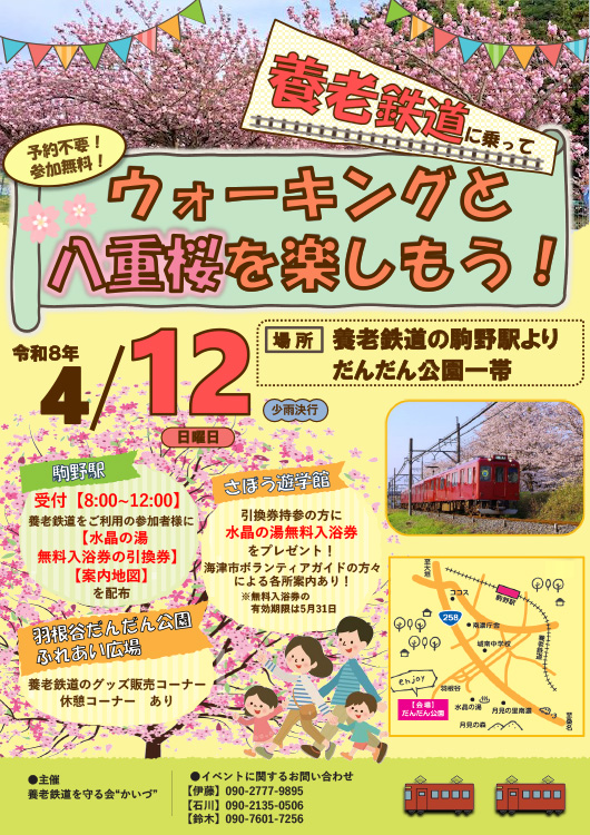 | 養老鉄道に乗ってウォーキングと八重桜を楽しもう! |