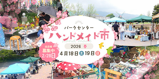 | 毎年、春と秋に開催しているパークセンターハンドメイド市。今年の春も実施します!クラフト作品、工芸品、アート、アクセサリー、野菜や花など手作り品限定のマルシェで、園内が大いに賑わいます。春の陽ざしがあたたかなパークセンターで、お散歩と一緒にお楽しみください! 「海津アクアマルシェ×木曽三川ミニわんこマルシェ」同時開催(予定) ---------------------------------------------- ※詳しくは、ホームページでご確認ください。 https://www.kisosansenkoen.jp/~aqua/maquaevent_handmade_guest.html ---------------------------------------------- |