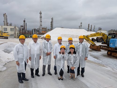 四日市商工会議所 東ソー㈱四日市事業所の岩塩(原料)の前にて集合写真